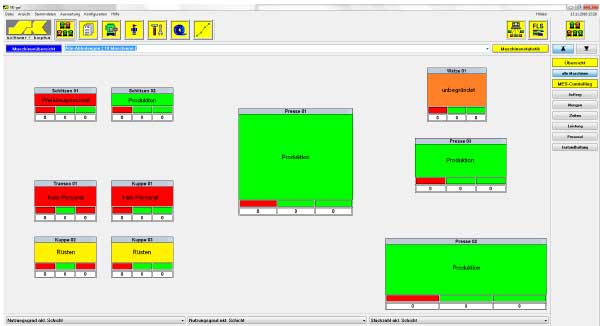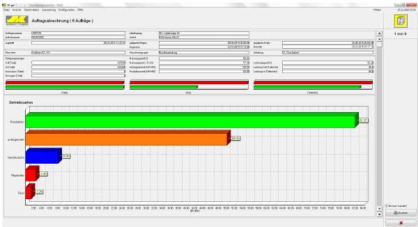 An der Maschine wird der Bediener durch eine Einblendung auf dem Monitor seines BDE-Terminals auf die anstehende SPC-Prüfung aufmerksam gemacht. Findet die Prüfung dann nicht im vorgesehenen Zeitintervall statt, oder liegen die Prüfergebnisse außerhalb der Eingriffs- bzw. Toleranzgrenzen, kann die Maschine auf Wunsch sofort abgeschaltet werden. Erst nach erfolgter Gutprüfung wird die Maschine wieder freigegeben. Durch diesen Zwangslauf ist sichergestellt, dass alle geforderten Prüfungen erst zum wirklich fälligen Zeitpunkt und damit wirtschaftlich vorgenommen werden. Eine gemeinsame Dokumentation der Maschinenlaufzeiten und der SPC-Prüfungen ist auf Knopfdruck abrufbar.