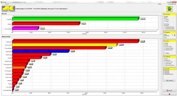 Ihr SK-go!®-System liefert Ihnen dazu detaillierte Stillstandsstatistiken und Analysen der Fehlerhäufigkeiten über beliebig wählbare Kriterien (Zeiten, Maschinen, Aufträge, Artikel, etc.).