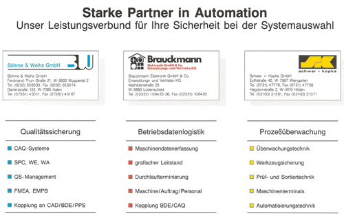 Gründung des Automationsverbundes gemeinsam mit den Firmen Böhme & Weihs (CAQ) und Brauckmann Elektronik (BDE)