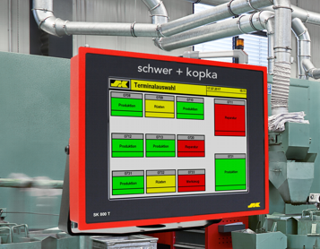 Das Maschinenterminal ist die Kommunikationseinheit für den gesamten Datenaustausch zwischen der Maschine und MES, und für den Maschinenbediener ist es der umfassende Informationsleitstand. Das Terminal erfasst alle Leistungsdaten von der Maschine wie Laufzeiten, Stillstandszeiten, Stillstandsgründe, Taktraten, gefertigte Mengen und vieles mehr und leitet diese an MES weiter.