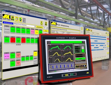 schwer + kopka fertigt eine breite Palette an MES-Maschinenterminals, gebaut im eigenen Haus für den Einsatz in rauer Industrieumgebung. Vom einfachen Low-Cost Terminal bis zum komfortablen Touch-Screen Gerät mit 15” großem Display für höchste grafische Ansprüche bietet unser Angebot die passende Erfassungsebene für alle Anwendungen. Die wichtigen Maschinendaten wie Laufzeiten, Stillstandszeiten, produzierte Mengen und Taktrate ermitteln die Terminals automatisch aus den Stückzahlimpulsen der angeschlossenen Maschinen. Die Terminals bieten dazu passende Eingänge an.
