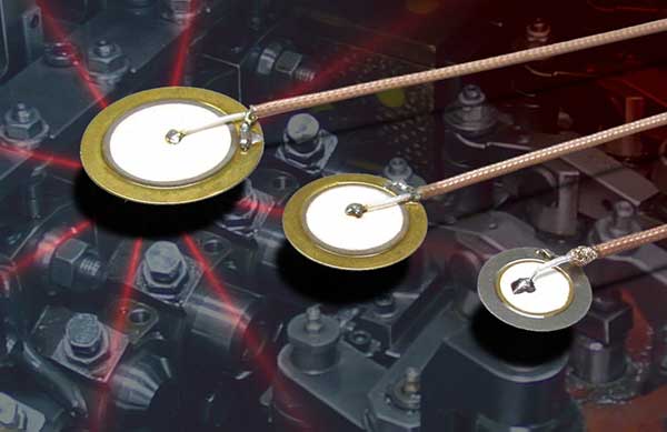 Piezo-electric sensor in flat disc shape for measuring force and/or acoustic emission signals in machine components or tools. The sensor can easily be installed by gluing it to the surface of the machine components or by cementing it into prepared cutouts or pockets. The sensors are available in different diameters from 10 to 27 mm.
